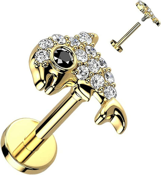 Surgical Steel Internally Threaded CZ Paved Dolphin Top on Flat Back Stud for Labret Monroe Cartilage