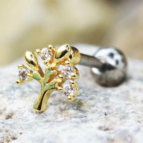 Gold Plated Sparkling Tree of Life Cartilage Earring