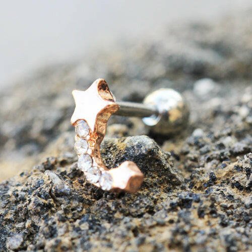 Rose Gold Plated Jeweled Circular Ring Cartilage Earring