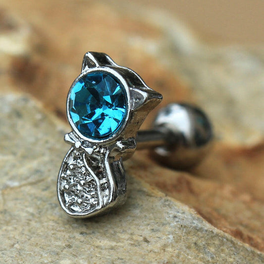 Stainless Steel Aqua Bow Tie Cat Cartilage Earring