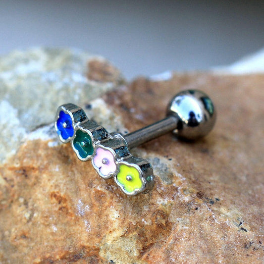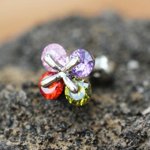 Stainless Steel Art of Brilliance Adorned Quatrefoil Cartilage Earring