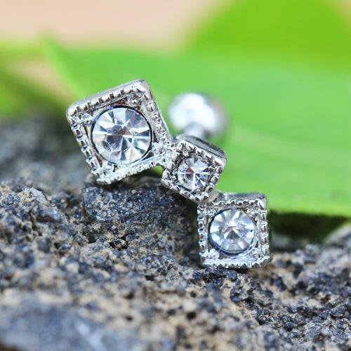 Stainless Steel Art of Brilliance Triple Square Drop Cartilage Earring