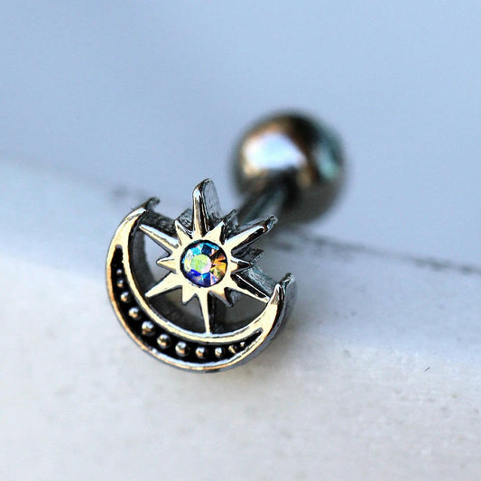 Stainless Steel Aurora Star and Moon Cartilage Earring