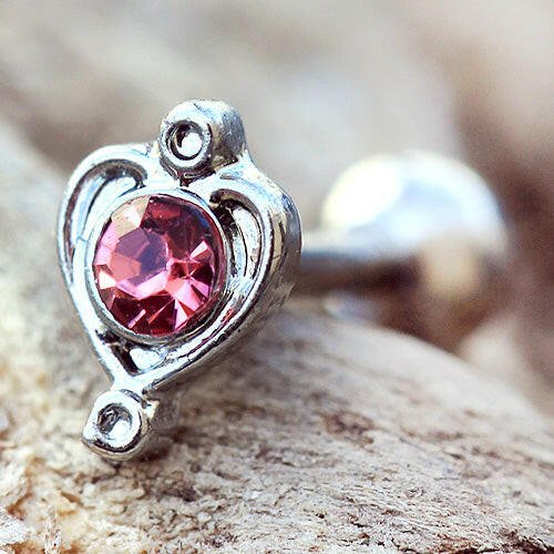 Stainless Steel Lovely Pink Heart Cartilage Earring