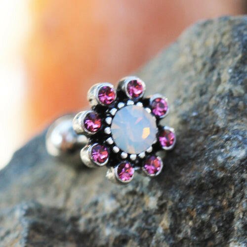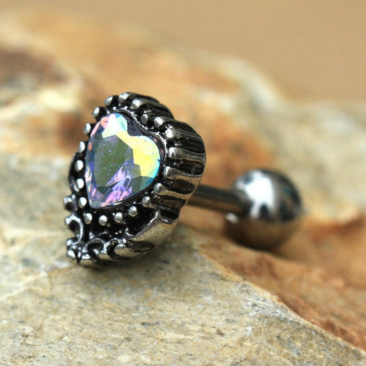 Stainless Steel Ornate Aurora Borealis Heart Cartilage Earring