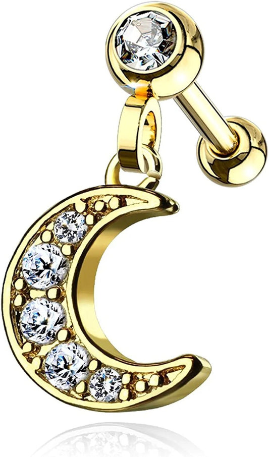 Surgical Steel CZ Paved Crescent Dangle Jeweled Ball Ear Cartilage Tragus Barbell Stud