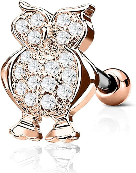 Surgical Steel CZ Paved Owl Top Ear Cartilage Tragus Barbell Studs