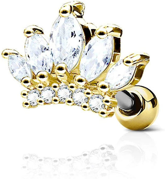 Surgical Steel CZ Paved Tiara Top Ear Cartilage Tragus Barbell Studs