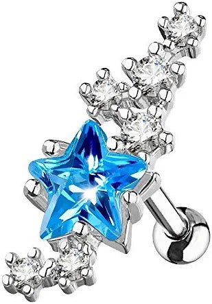 Surgical Steel Lined Cluster CZ Stars with Large Star Center Ear Cartilage Tragus Barbell Studs
