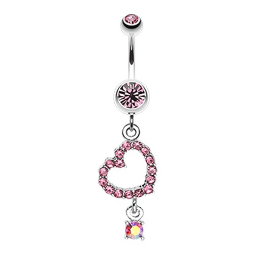 • Shimmering Heart Gem Dangle Belly Button Ring Navel Ring Impulse Piercings Clear