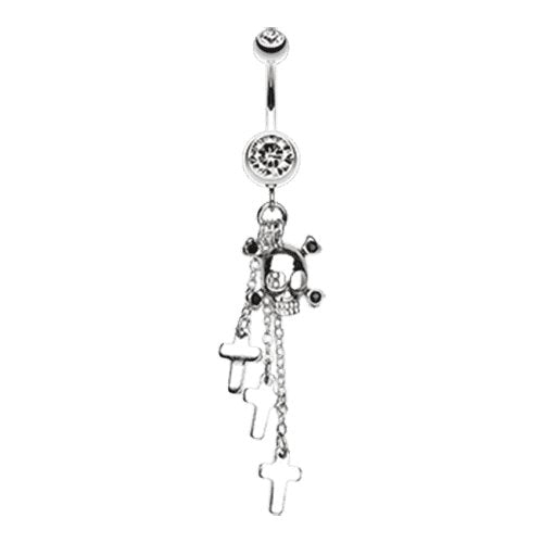Skull Crossbones and Cross Dangle Belly Button Ring