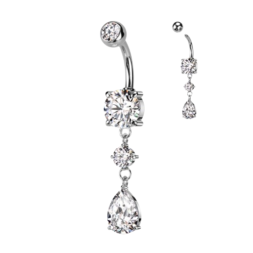 Tear Drop CZ Dangle 316L Surgical Steel Belly Button Navel Ring