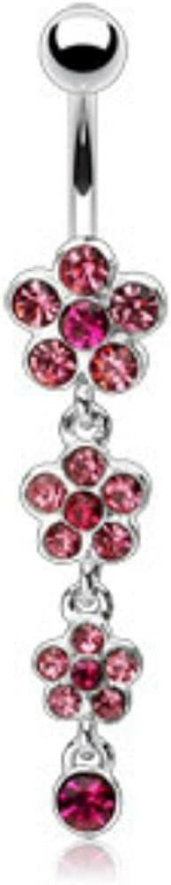 Triple Marquise CZ Flowers Dangle with Gemmed Top Surgical Steel Belly Button Navel Rings