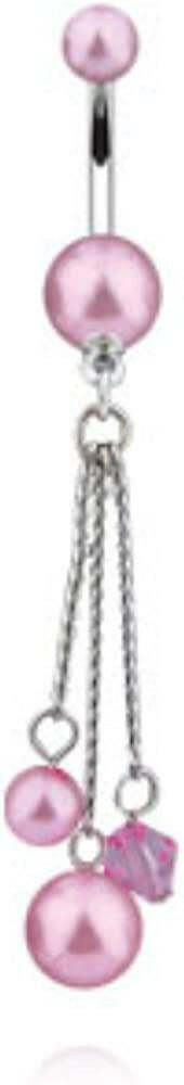 Surgical Steel Pearl Coated Balls and Dangles Belly Navel Ring