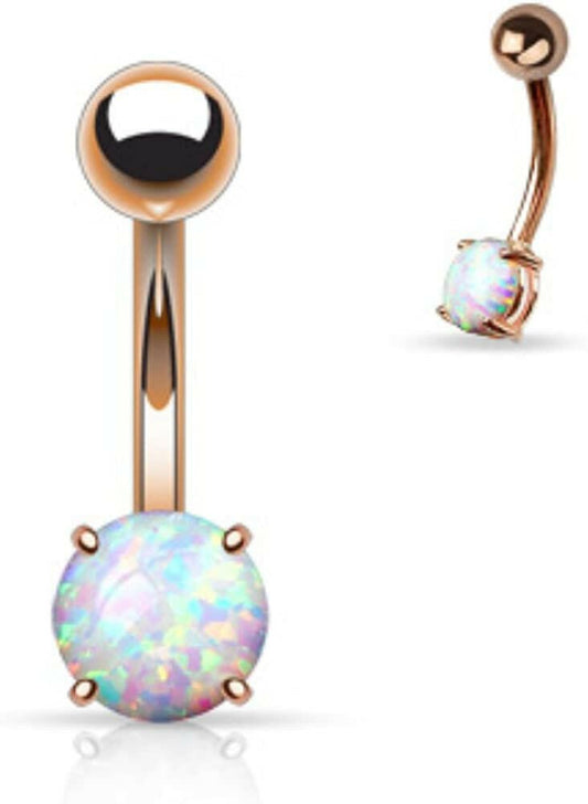 Surgical Steel Plated Basic Non Dangle Opal Prong Belly Navel Ring