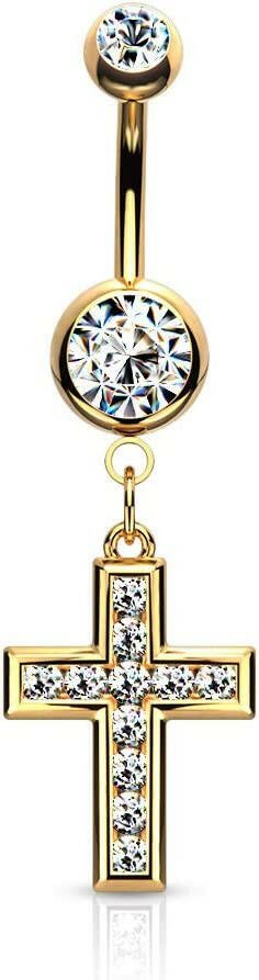 Surgical Steel CZ Cross Dangle With Jeweled Belly Navel Ring
