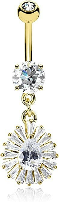 Surgical Steel Pear CZ Center and Princess Cut CZ With Around Dangle CZ Drop Belly Navel Ring