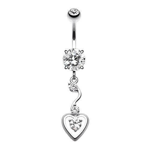 Dainty Dangled Cubic Zirconia Heart Belly Button Ring