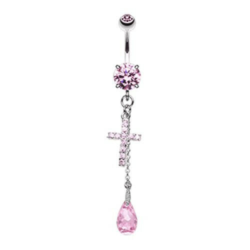 Mini Cross Chain Dangle Cubic Zirconia Belly Button Ring