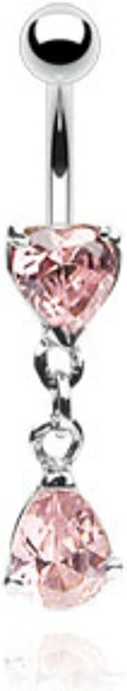 Surgical Steel Heart CZ with Pear CZ Dangle Belly Navel Ring