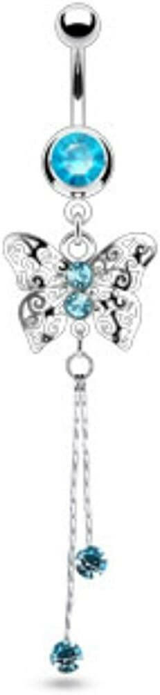 Surgical Steel Laser Cut Royal Butterfly with CZ Dangle Belly Navel Ring