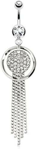 Surgical Steel Plate Paved Round with Chandelier Dangle Belly Navel Ring