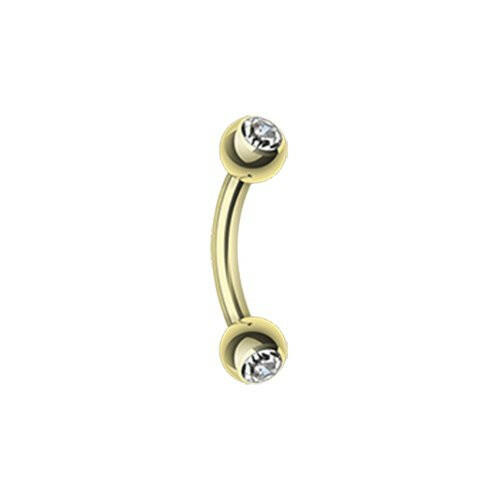 Gold Plated Double Gem Ball Curved Barbell Eyebrow Ring