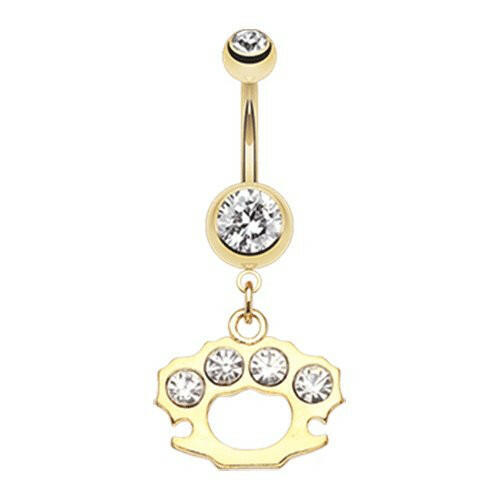 Golden Brass Knuckle Sparkle Belly Button Ring