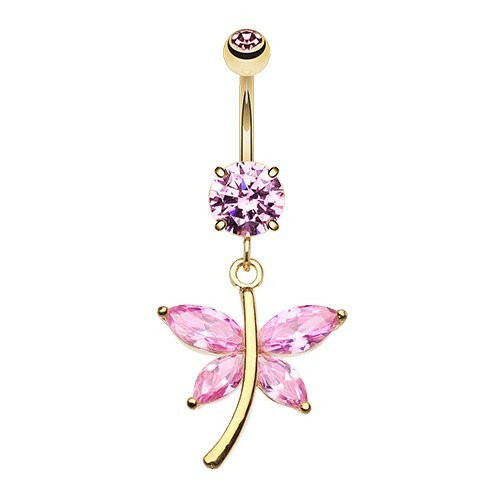 Golden Dazzling Butterfly Cubic Zirconia Belly Button Ring