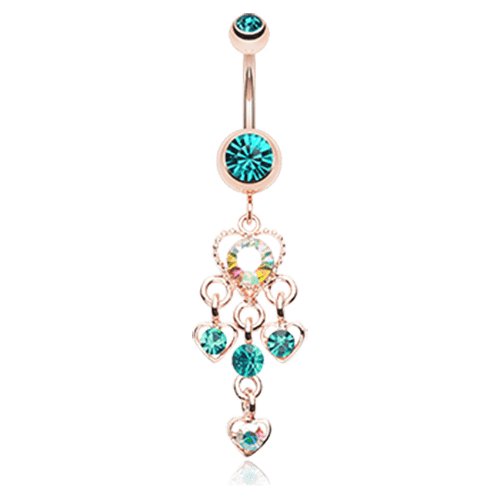 Rose Gold Sparkle Multi Heart Belly Button Ring