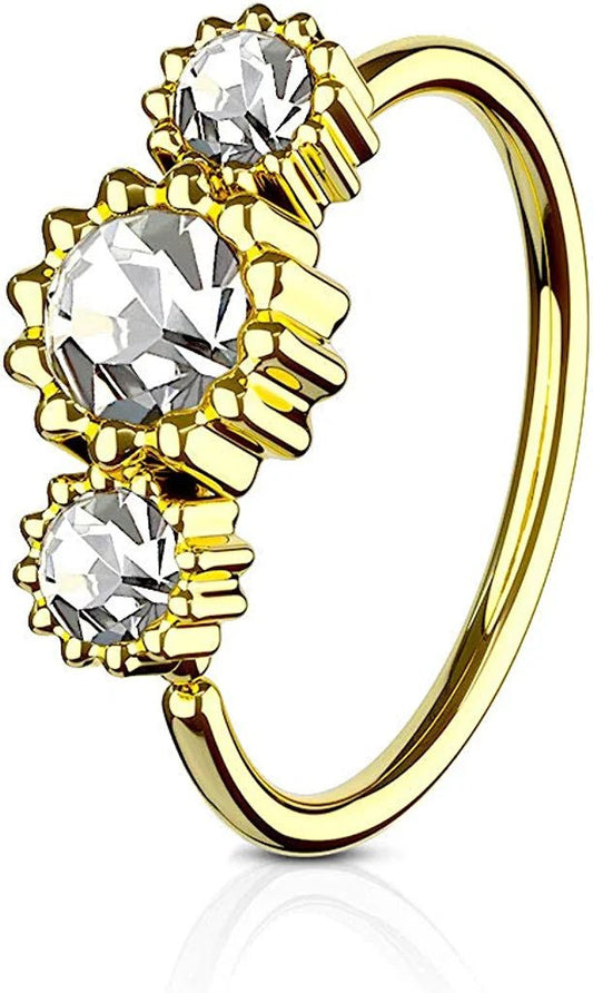 Surgical Steel Gold IP Plated 3 Round CZ Hoop Ring for Nose and Ear Cartilage