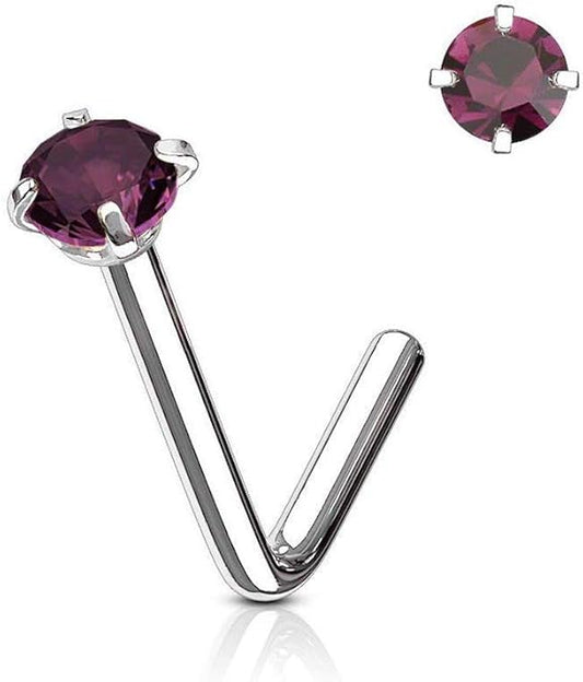 L Bend Prong Set CZ 316L Surgical Steel Nose Stud Rings