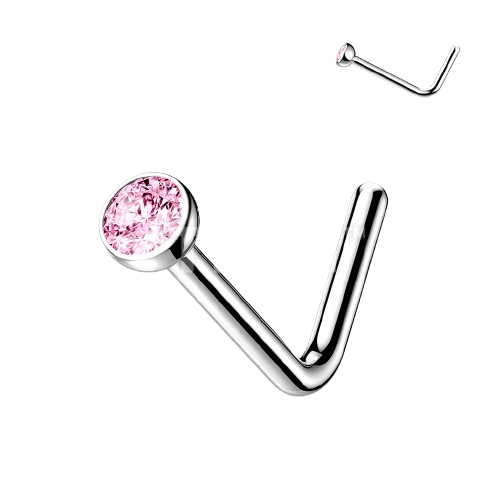 Implant Grade Titanium L Bend Nose Stud With Micro Press Fit Jewel