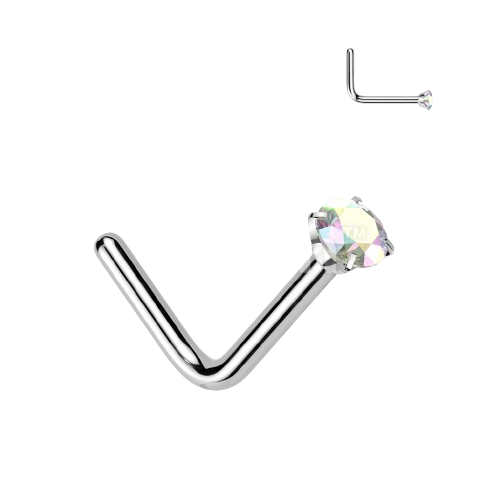 Implant Grade Titanium L Bend Nose Stud With Round Prong Set CZ