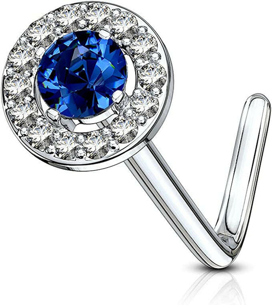 Surgical Steel Double Tiered Round CZ Center Top L Shaped Nose Ring