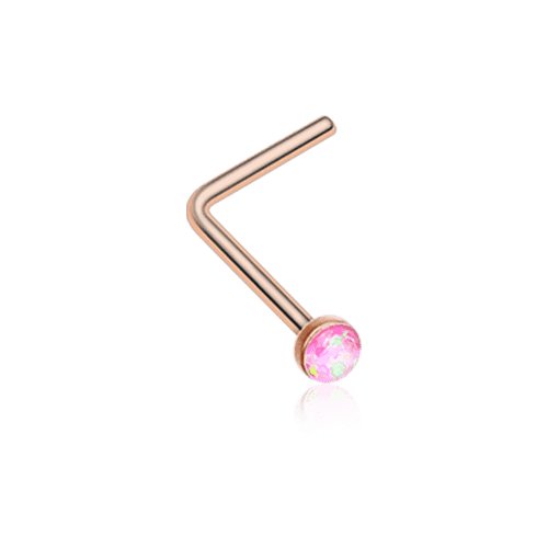 Rose Gold Opal Sparkle L-Shaped Nose Ring
