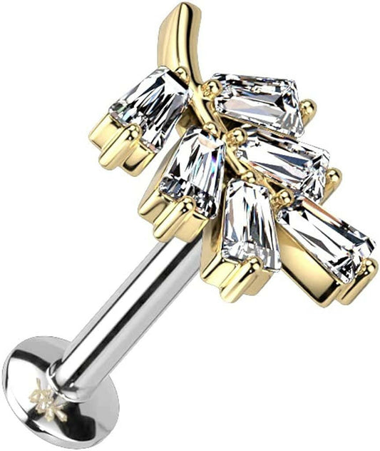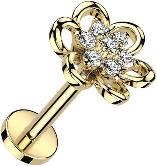 Golden CZ Flower Gem Top Steel Internally Threaded Labret