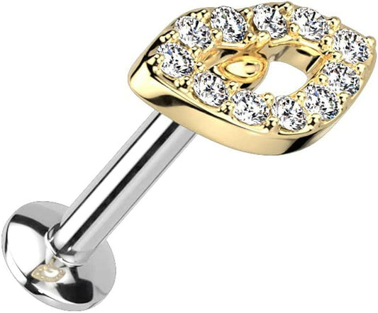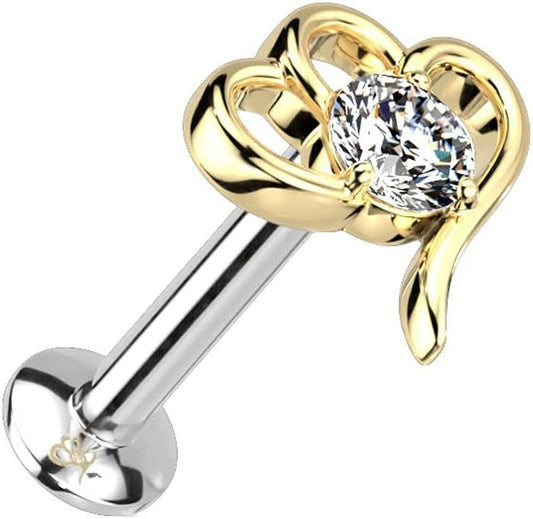 Golden CZ Lotus Gem Top Steel Internally Threaded Labret