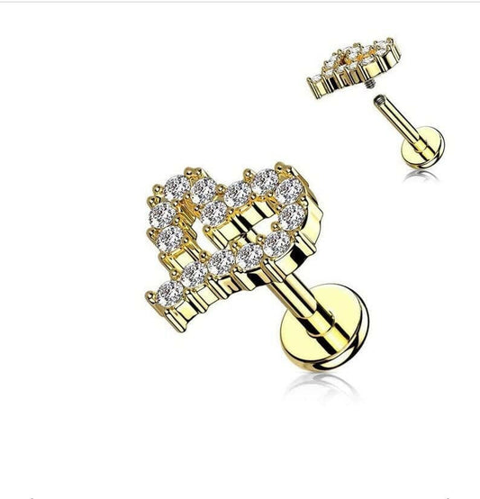 Surgical Steel Internally Threaded CZ Paved Heart Top Flat Back Stud for Labret Monroe Cartilage