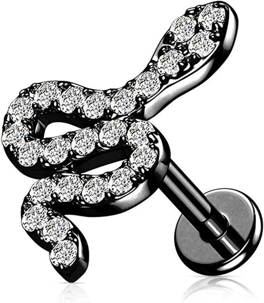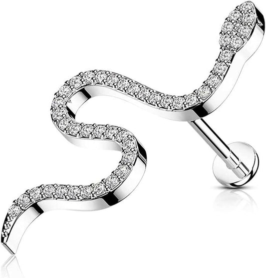 Surgical Steel Internally Threaded CZ Paved Snake Top Flat Back Stud for Labret Monroe Cartilage