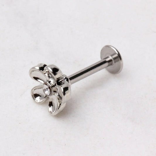 CZ Flower Gem Top Steel Internally Threaded Labret