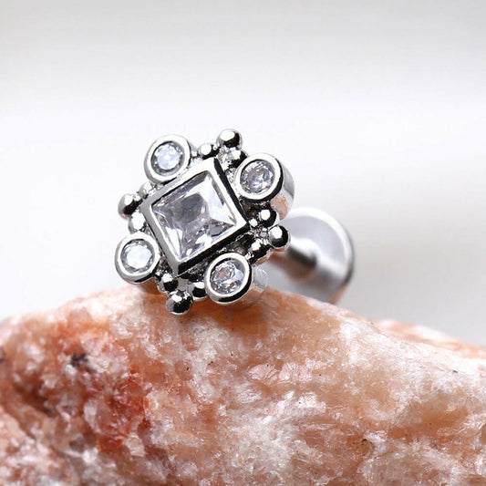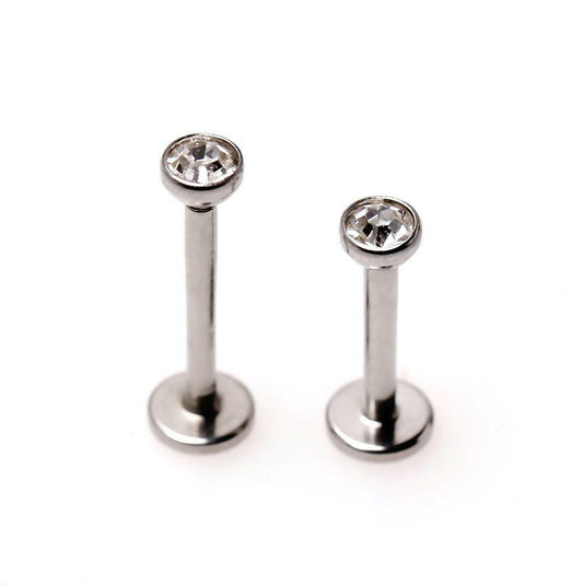 Stainless Steel Internally Threaded Flat CZ Top Labret