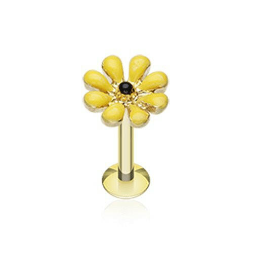 Golden Internally Threaded Prong Set Gem Top Steel Labret Monroe