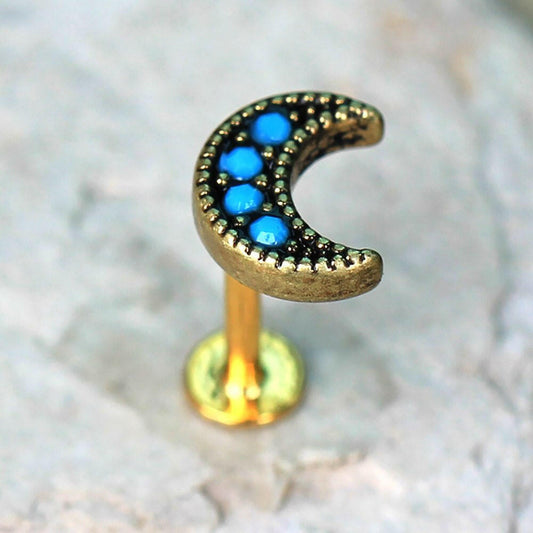Surgical Steel Aurora Borealis Gemmed Crescent Moon Labret