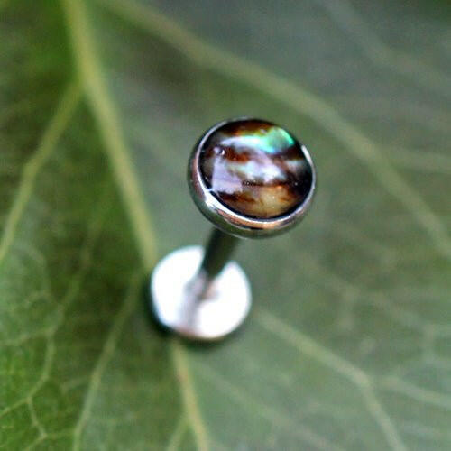 Internally Threaded Stainless Steel Abalone Flat Top Labret