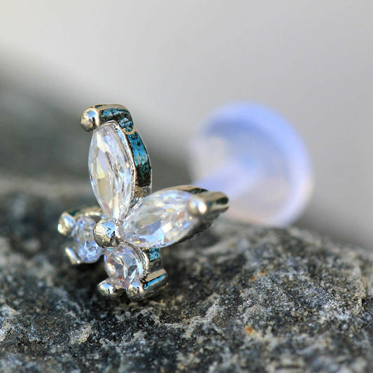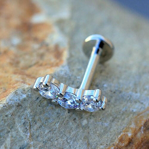 Internally Threaded Stainless Steel Curved Triple Prong Set CZ Labret