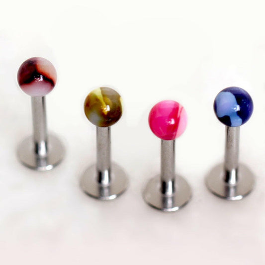 Stainless Steel Labret with Metallic Two Tone Marble Acrylic Ball