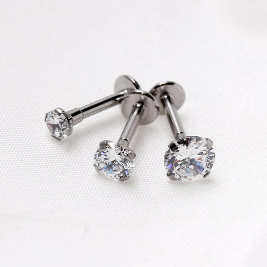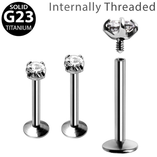 Internally Threaded Titanium Prong Set CZ Labret