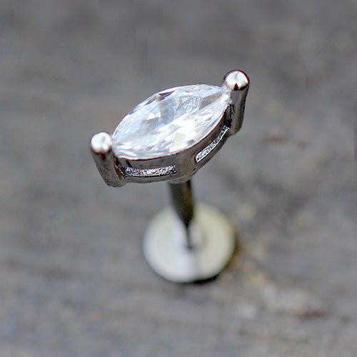 CZ Prong Dainty Dangle Gem Top Steel Externally Threaded Labret