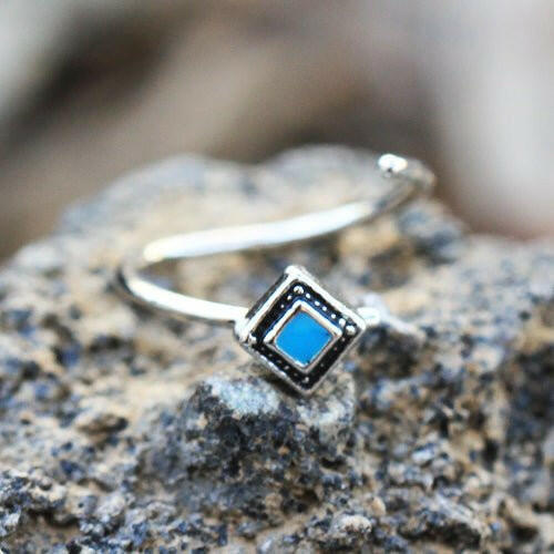 Stainless Steel Rhombus Cut Turquoise Lip Ring